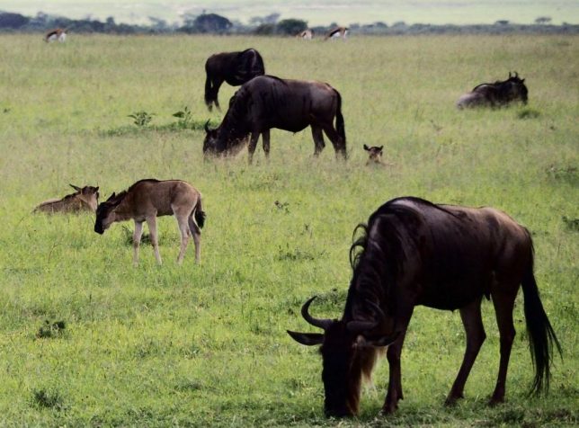 しかも、よく見てください。ヌーの赤ちゃん達もいます!赤ちゃんヌーなんて見たことないですよね!しかも野生です!