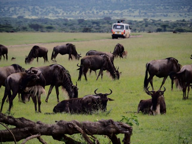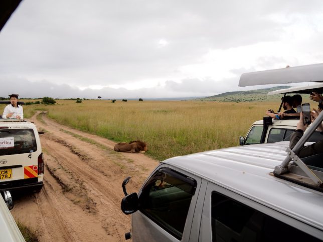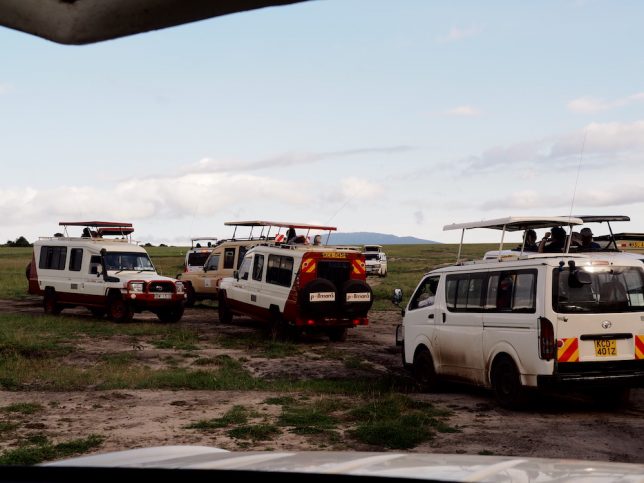 ゲームドライブ中は、多くのバンが広大なマサイマラ国立公園内を走り回り、動物を探す。そして、レアな動物が見つかったら、無線で他のバンに連絡する手法をとっています。なので、かなりの確率で動物に出会えることができる。