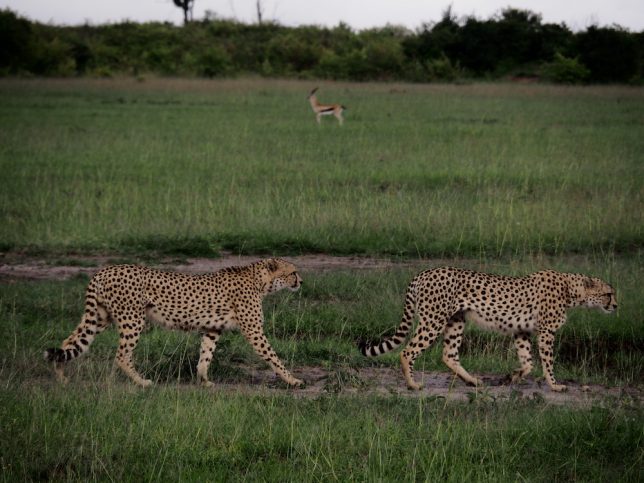実は、この2匹はずっと、後ろのガゼルを狙っていました。写真のように、「気にしてないよ」感を出して、ガゼルが気を抜いたところで、一気に襲いかかるんだとか。残念ながら、この後ガゼルは走って去っていってしまったため、チーターのハントを見ることはできませんでした。